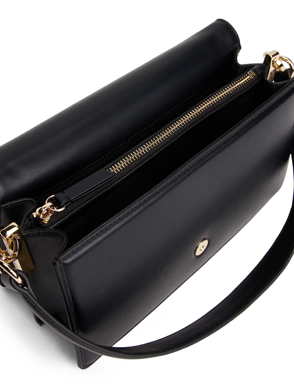 - Umhängetasche wird mit Überschlagklappe und Magnetverschluss geschlossen