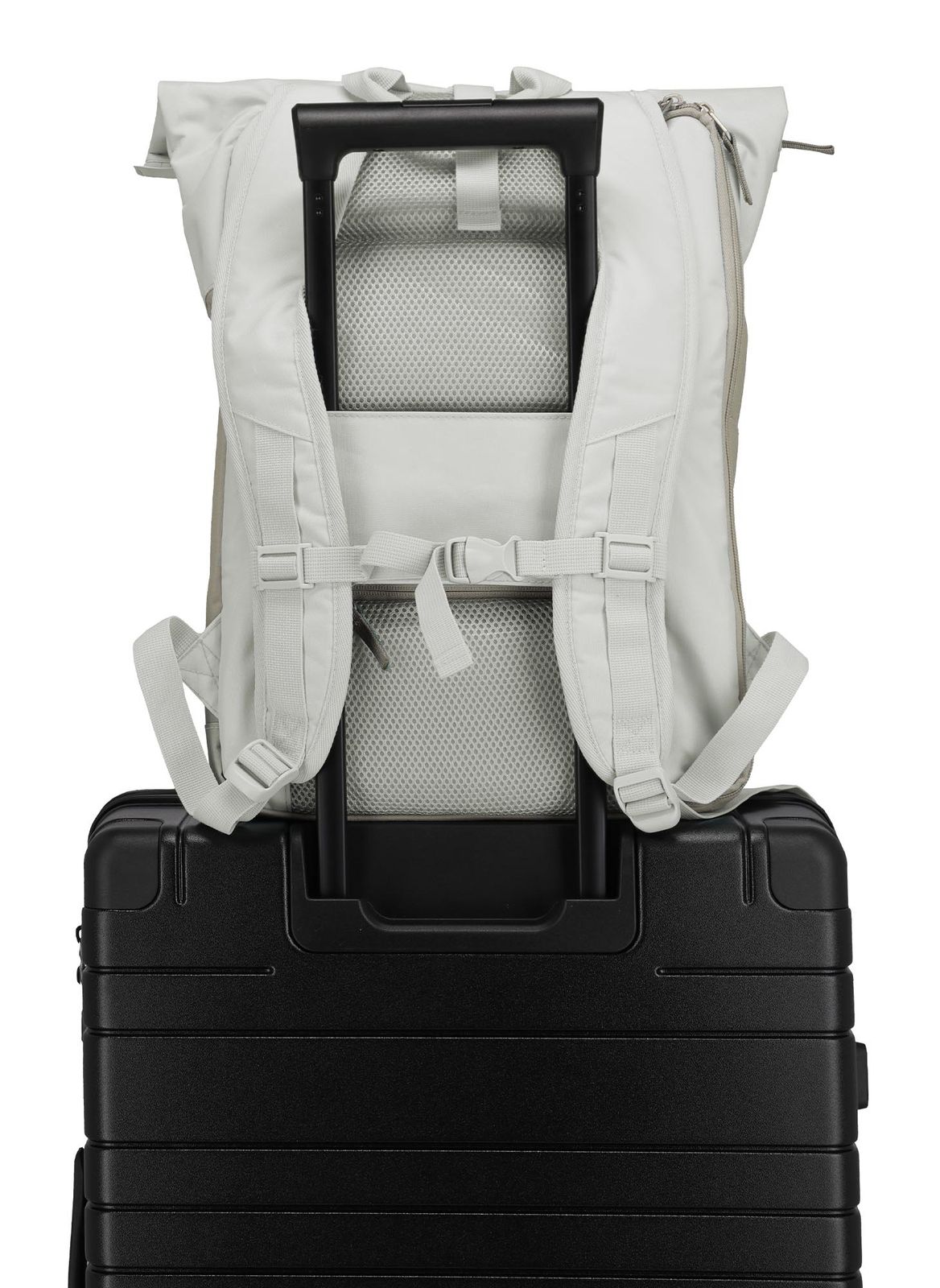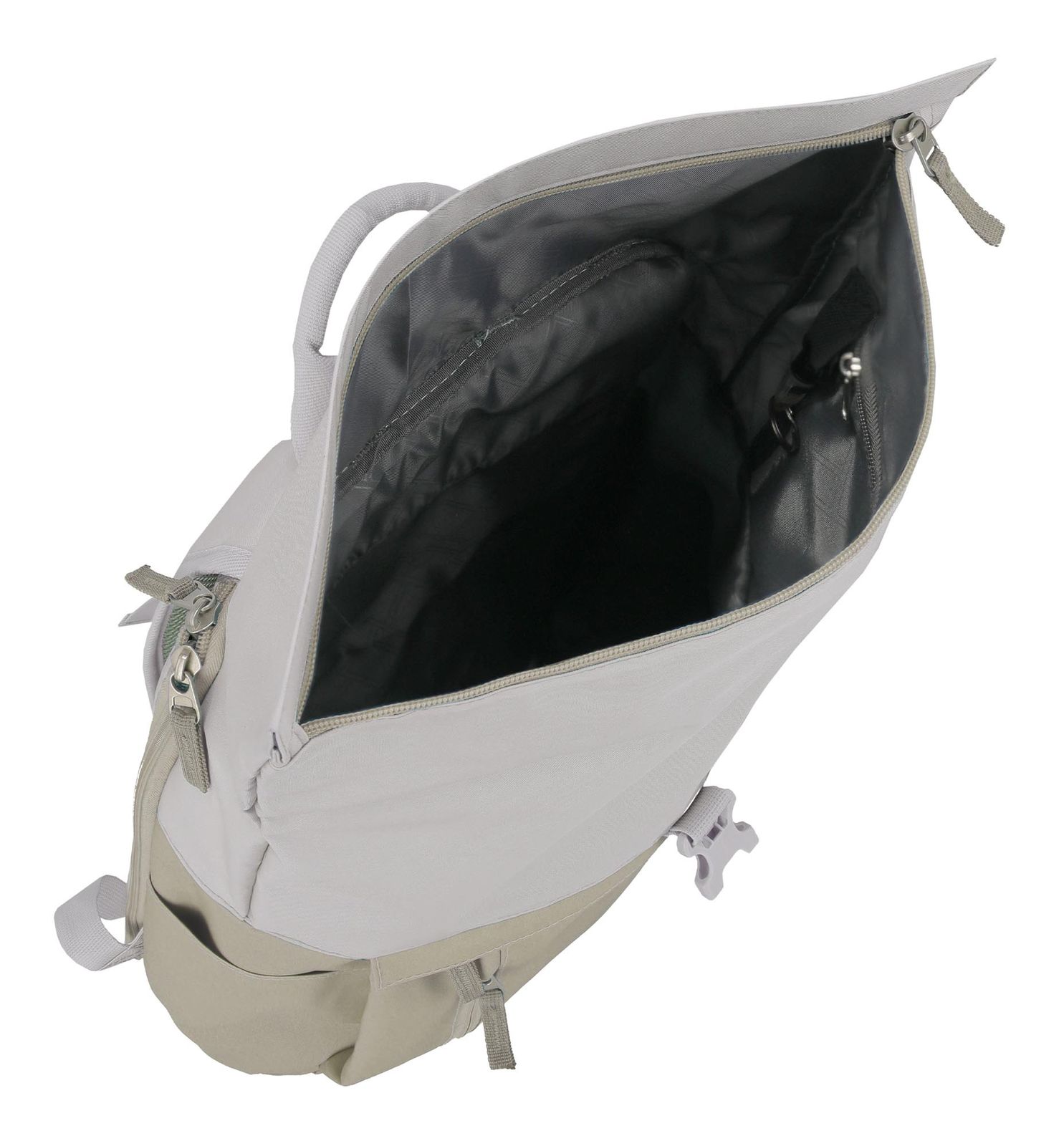 - Rucksack wird mit Zipper, Rollverschluss und verstellbarem Clipverschluss geschlossen