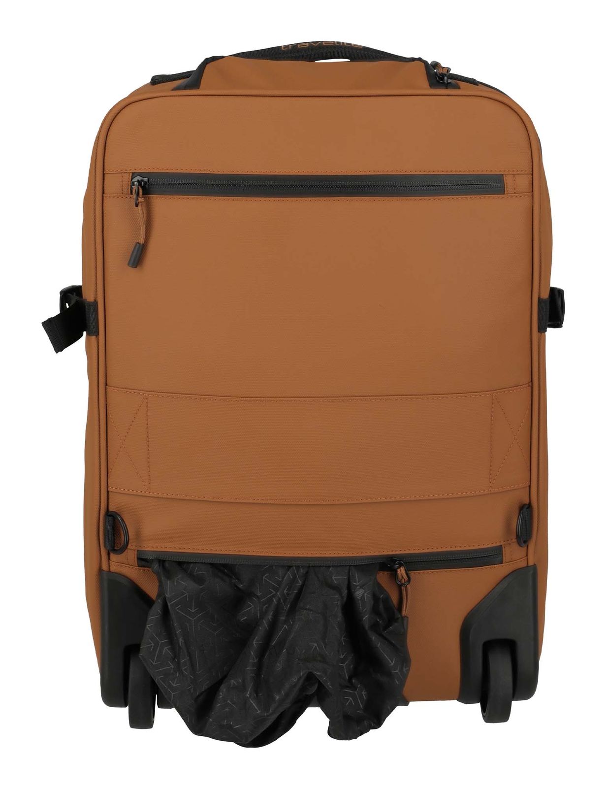 - Auf der Oberseite 1 Zipperfach mit wasserabweisendem Zipper, in dem sich 1 herausziehbares Trolleysystem befindet