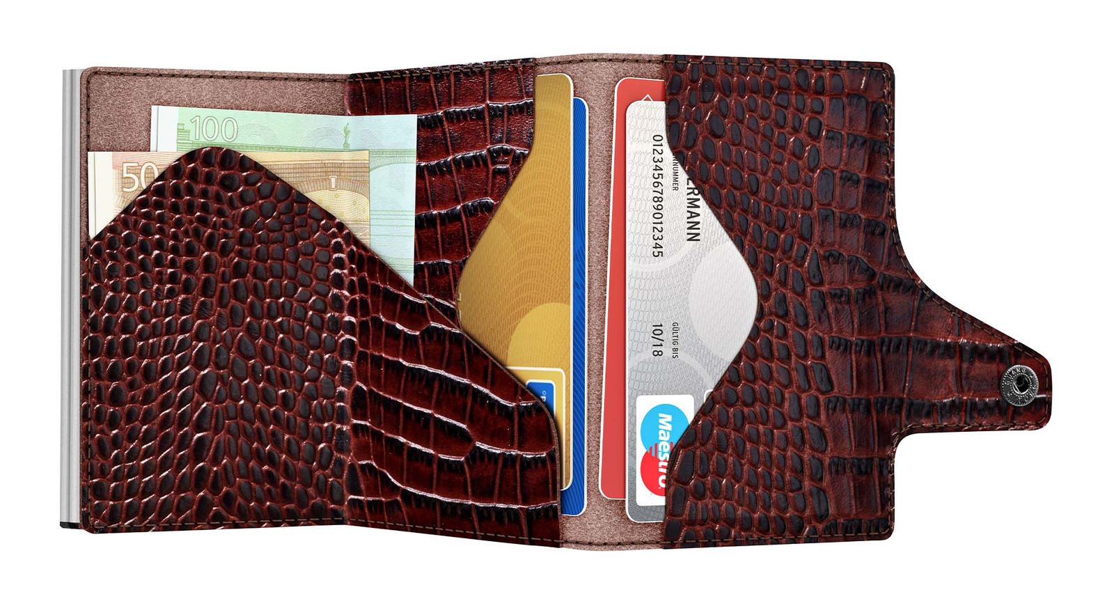 Click & Slide Doublewallet Croco Brown / Silver