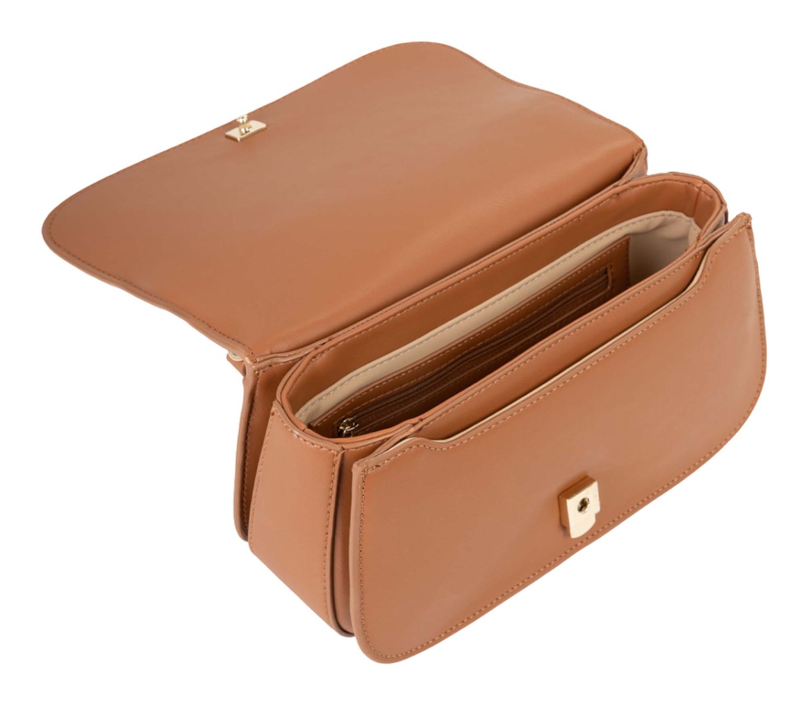 - Handtasche wird mit Überschlagklappe und Schnappverschluss geschlossen