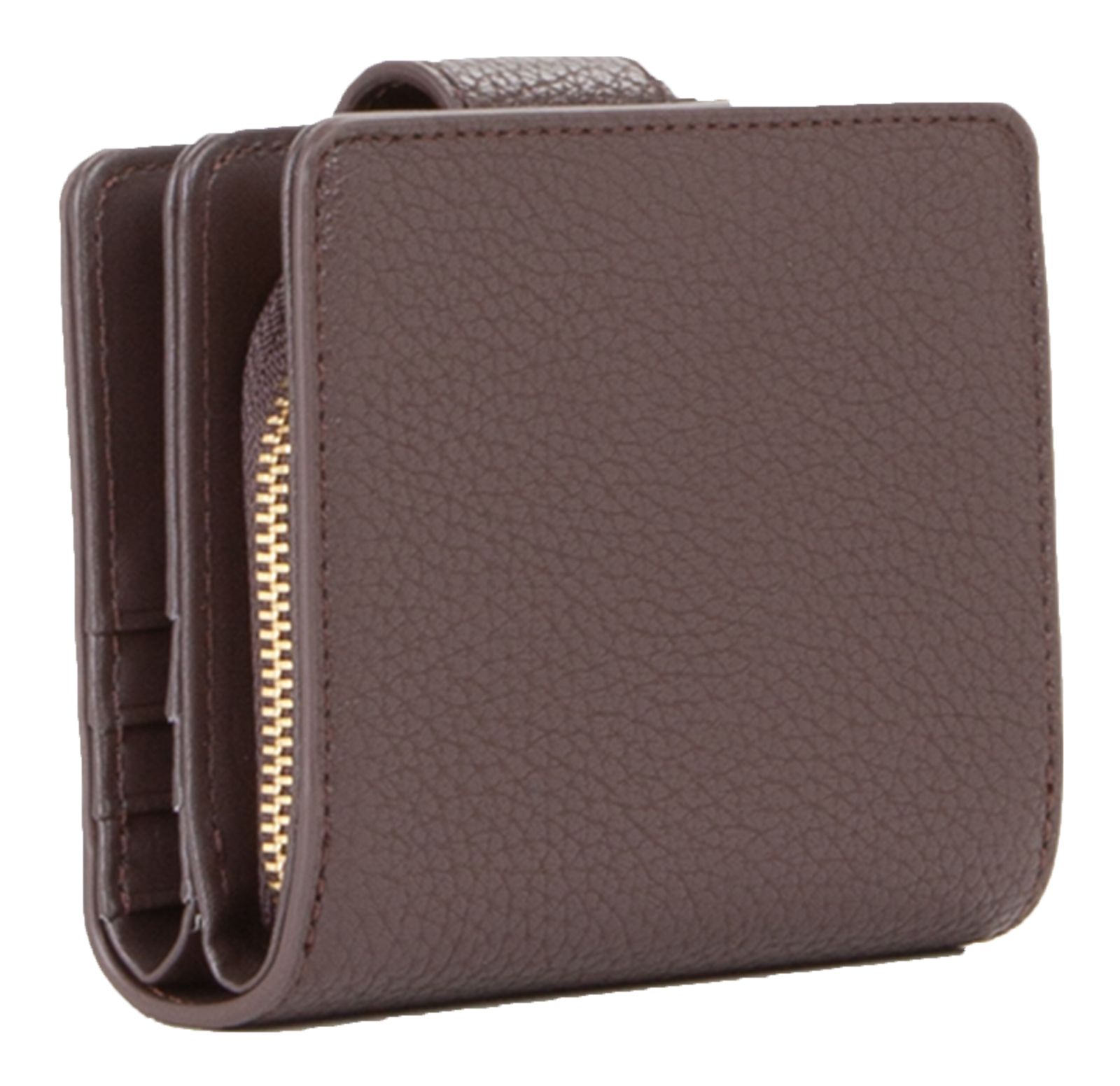 - Geldbörse wird mit Lasche und Druckknopf geschlossen