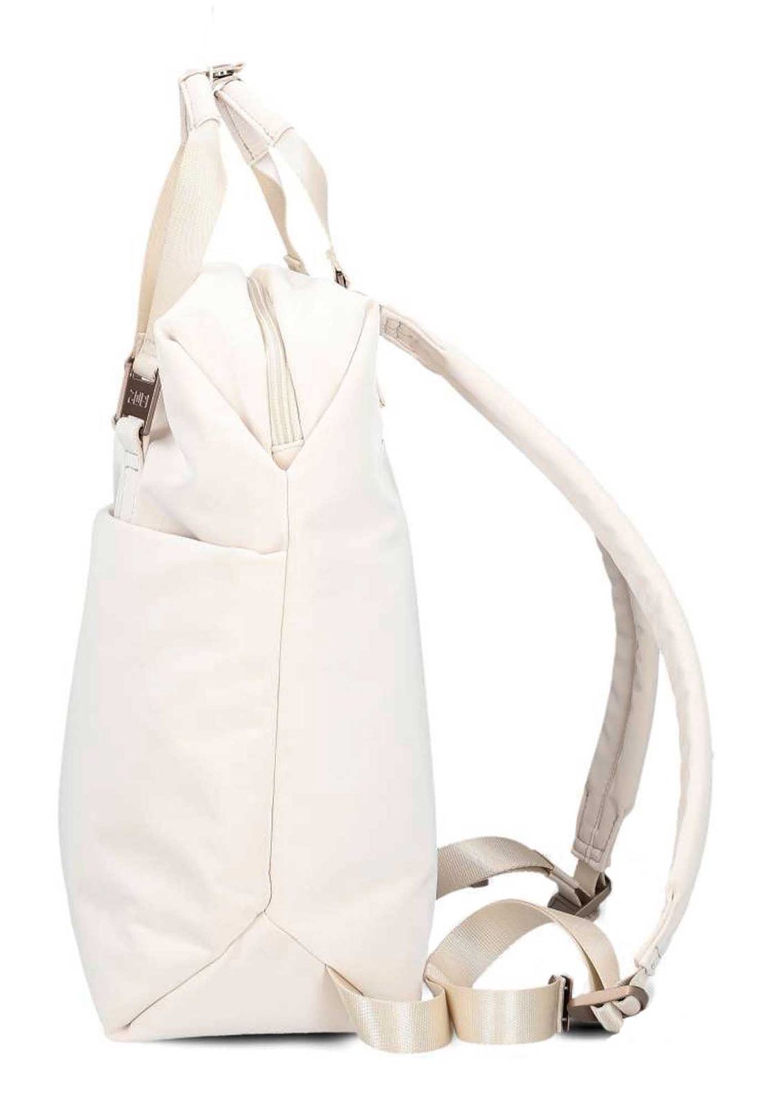 - Im Hauptfach 1 gepolstertes Tabletfach mit Lasche und Druckknopf, 1 Schlüsselfinder mit Karabinerhaken, 1 Zipperfach, 1 elastischer Flaschenhalter und 2 Einschubfächer